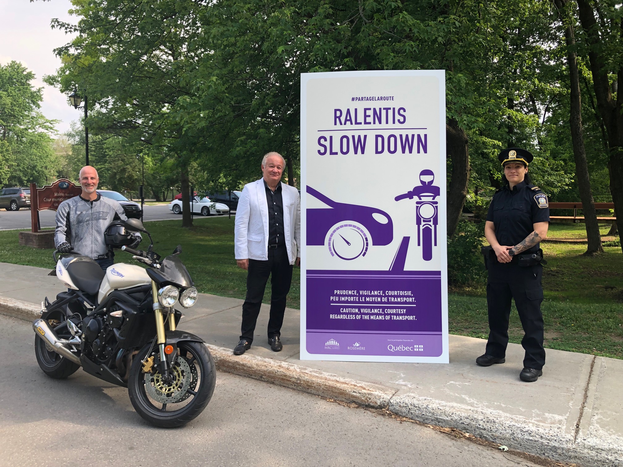 « Avec le retour de la belle saison, le partage de la route est primordial pour la sécurité de l’ensemble des usagers. Ralentissez afin de rendre nos quartiers plus sûrs. À vélo, à pied, à moto ou en auto, faisons preuve de courtoisie. Nous faisons tous partie de la solution! », affirme monsieur Eric Westram, maire de Rosemère.