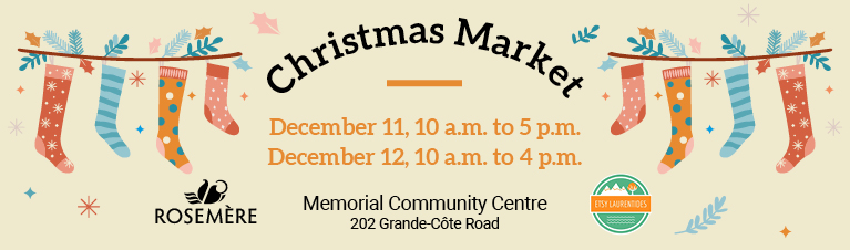Come and discover the products of a variety of artisans at the Christmas Market, organized in collaboration with Etsy Laurentides. The event will take place at the Memorial Community Centre: