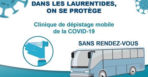 Le CISSS des Laurentides nous informe des prochaines dates des cliniques de dépistage mobiles de la COVID-19 SANS RENDEZ-VOUS dans la région: