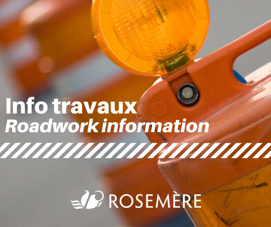 Due to road work, Grande-Côte Road will be closed at the intersection of Willowtree Street starting November 23, from 9:30 a.m. to 3:30 p.m. A detour route will be provided to ensure the safety of all.