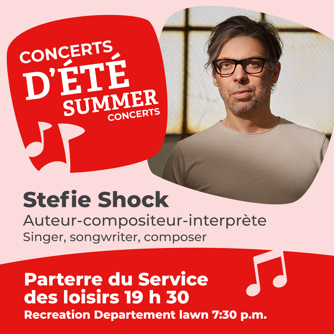 Demain soir, venez assister au concert de Stefie Shock, auteur-compositeur interprète, multi-instrumentiste, réalisateur et DJ québécois. Cet artiste original, qui célèbre près de 25 ans de carrière, a été consacré comme bête de scène en 2001 lors de sa première tournée. Un spectacle qui promet!