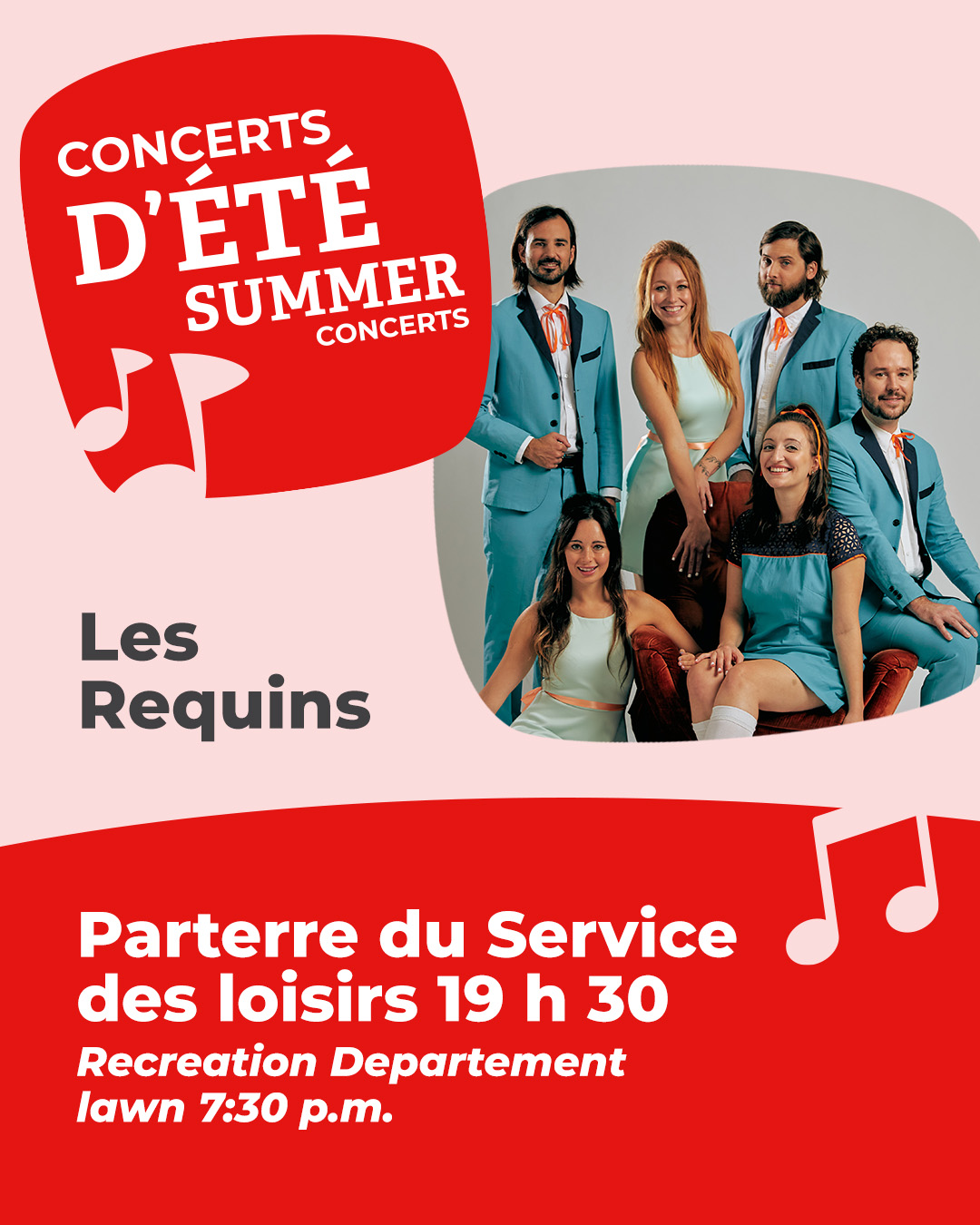Les Requins, formés de jeunes musiciens fougueux et aguerris, semblent arriver directement des années 60! Leur spectacle hommage aux grandes chansons de l’époque invite les gens de tous les âges à célébrer cette décennie riche en musique.