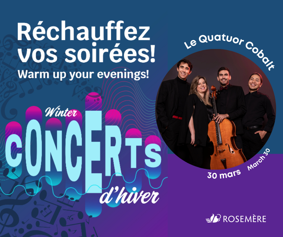 Le jeudi 30 mars prochain, à 19 h 30, se tiendra le deuxième concert d'hiver en compagnie du Quatuor Cobalt.