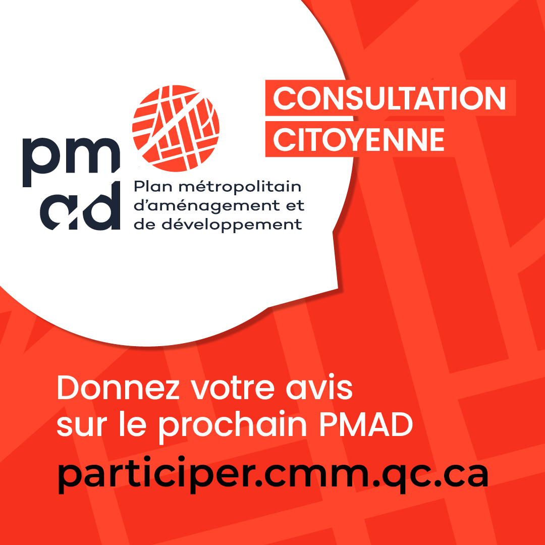 D’ici le 8 novembre prochain, découvrez le projet de Plan métropolitain d’aménagement et de développement révisé et donnez votre avis à participer.cmm.qc.ca.