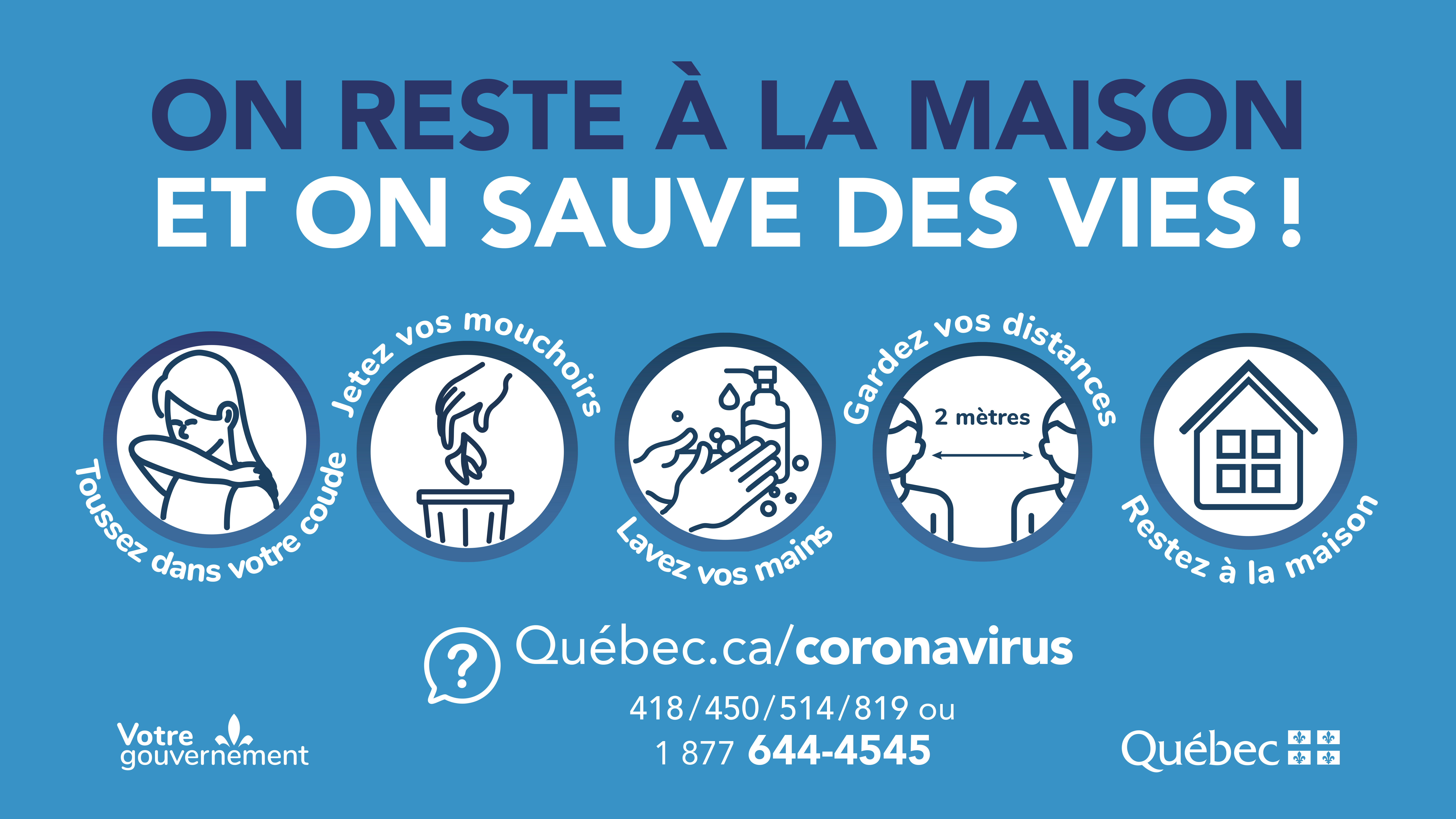 Le gouvernement du Québec a développé un guide autosoin afin d’aider les citoyens à prendre les meilleures décisions possibles pour leur santé et celle de leurs proches durant la pandémie. Ce guide vous informe sur les meilleurs moyens pour se protéger, connaître les soins de base à donner à son entourage et savoir qui et quand consulter. Téléchargez-le dès maintenant sur le site Web du MSSS.