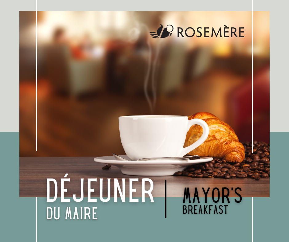 Le prochain déjeuner du maire se tiendra le samedi 16 septembre. À l'occasion de la Fête des récoltes, il se tiendra au kiosque des élus, devant la bibliothèque municipale de Rosemère.
