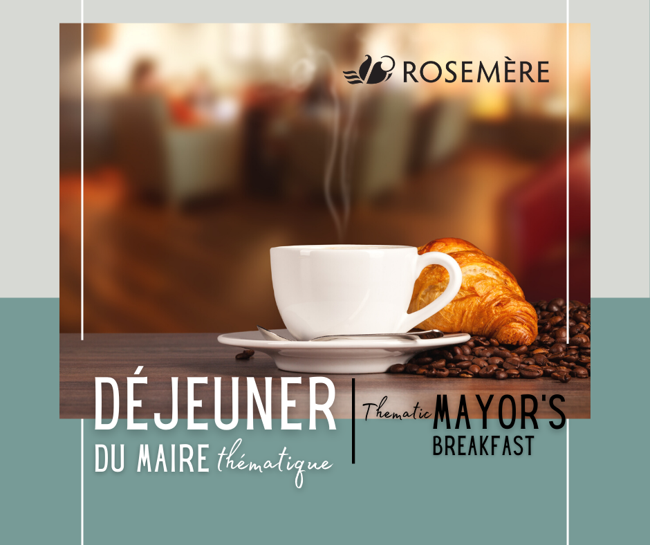 Le prochain déjeuner du maire se tiendra le samedi 24 février, dès 9 h 30, dans la verrière de la bibliothèque municipale H.-J.-Hemens (339 ch. de la Grande-Côte).