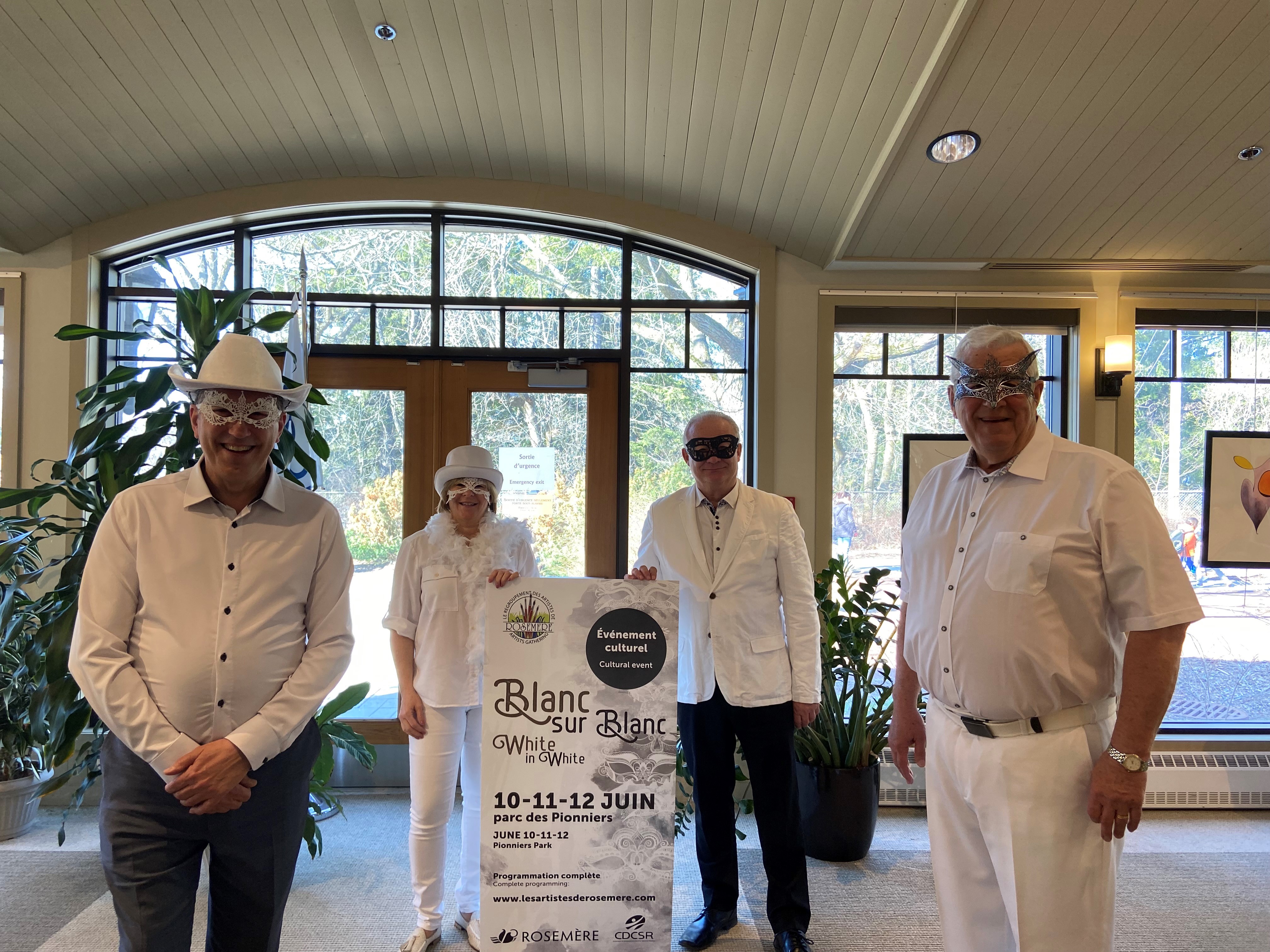 Après deux années de répit, la Ville de Rosemère est heureuse d’annoncer le retour de l’événement culturel Blanc sur Blanc du 10 au 12 juin prochain, au parc des Pionniers. Sous le thème du bal vénitien, l’événement est organisé par le Regroupement des artistes de Rosemère (RAR) et soutenu financièrement par la Ville, par la Corporation de Développement Culturel et Sportif de Rosemère (CDCSR) ainsi que par plusieurs autres commanditaires. Une aide pour la mise sur pied de l’événement, en plus du prêt de matériel et de personnel pour le volet technique de l’activité est également offert par la Ville.