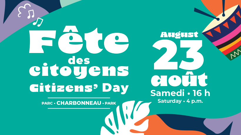 La Fête des citoyens, c’est le rendez-vous estival qui promet une journée haute en couleur, en musique et en découvertes! Beau temps, mauvais temps, elle a lieu dès 16 h, au parc Charbonneau. Profitez d'une foule d'activités gratuites et de spectacles offerts à toute la famille.