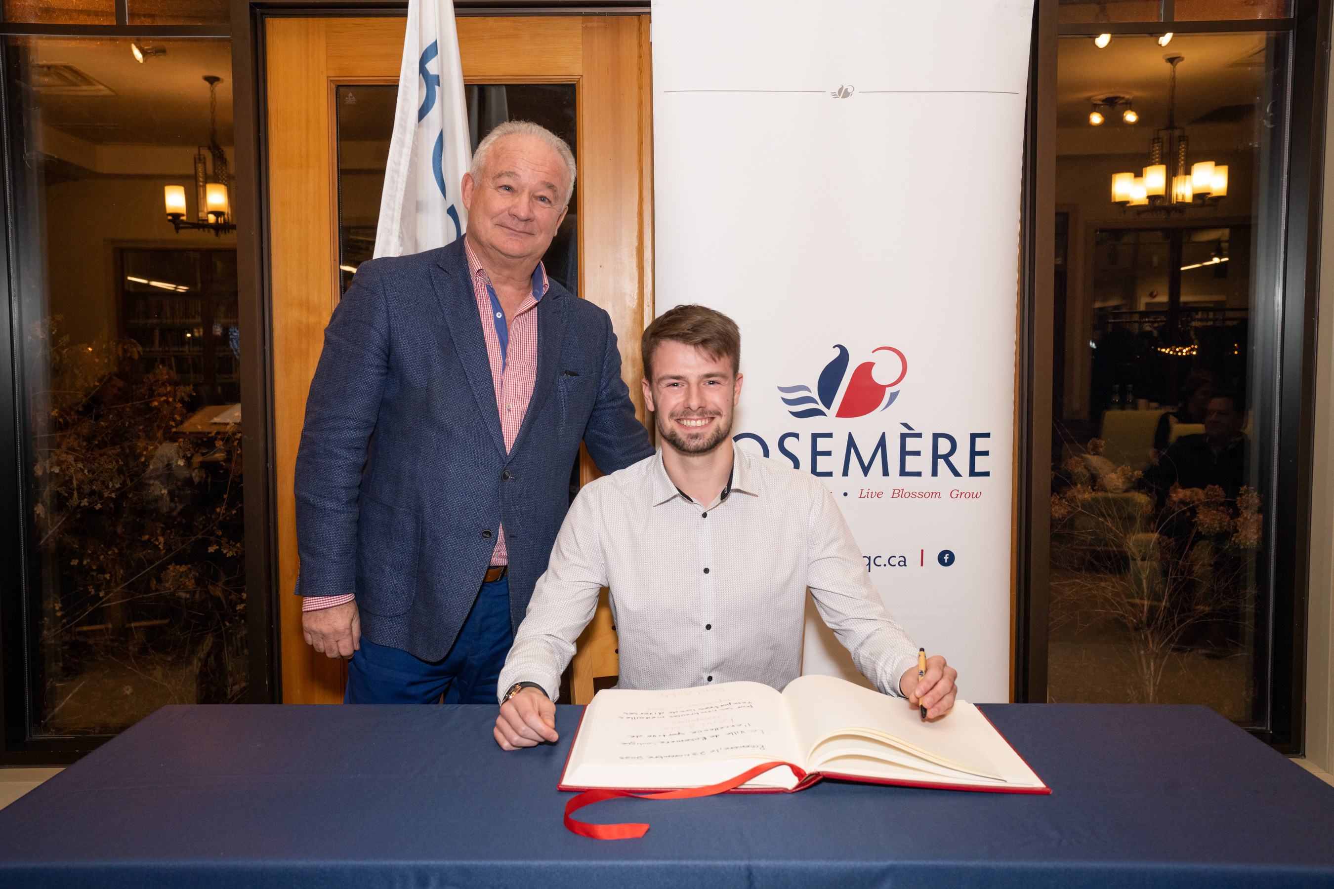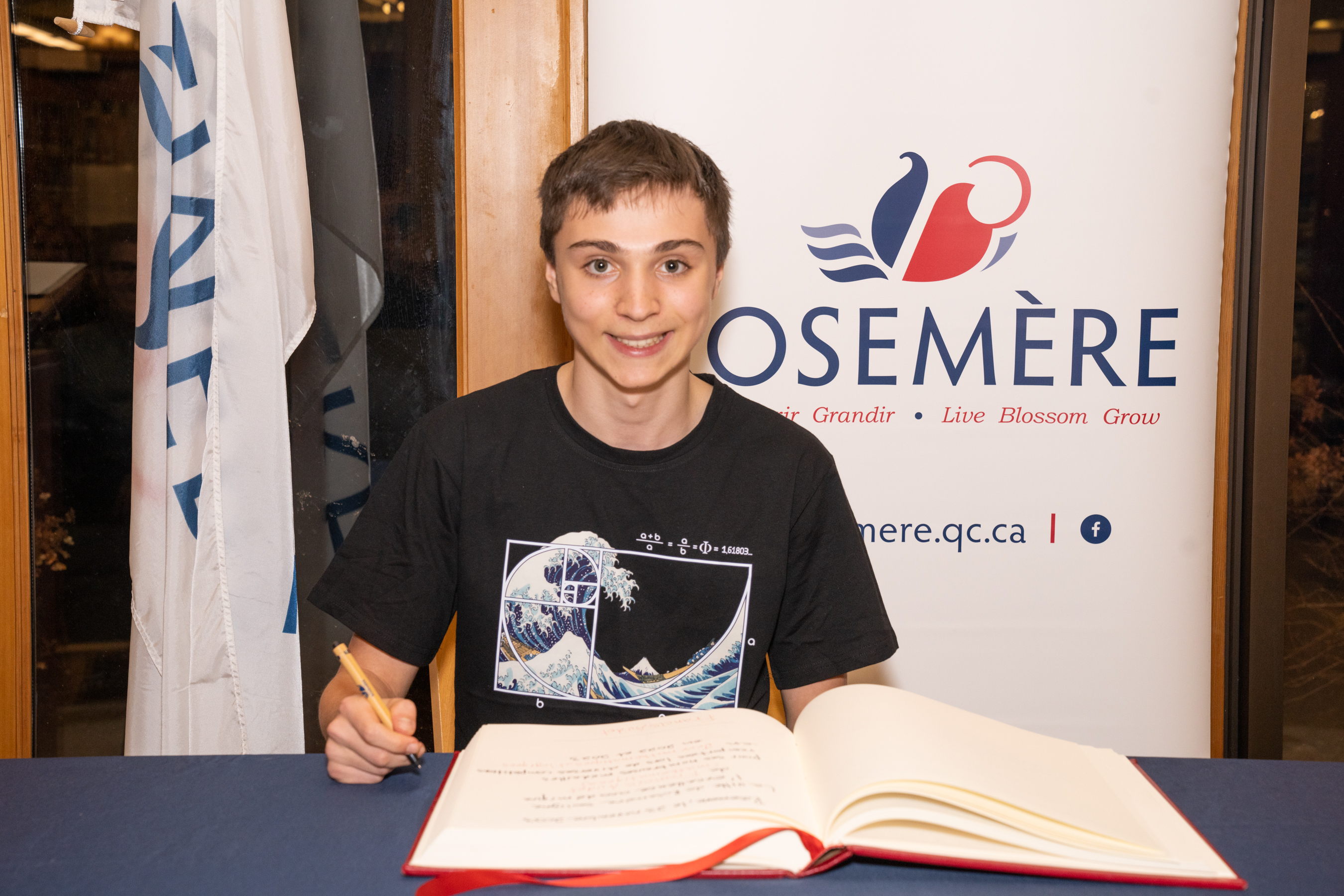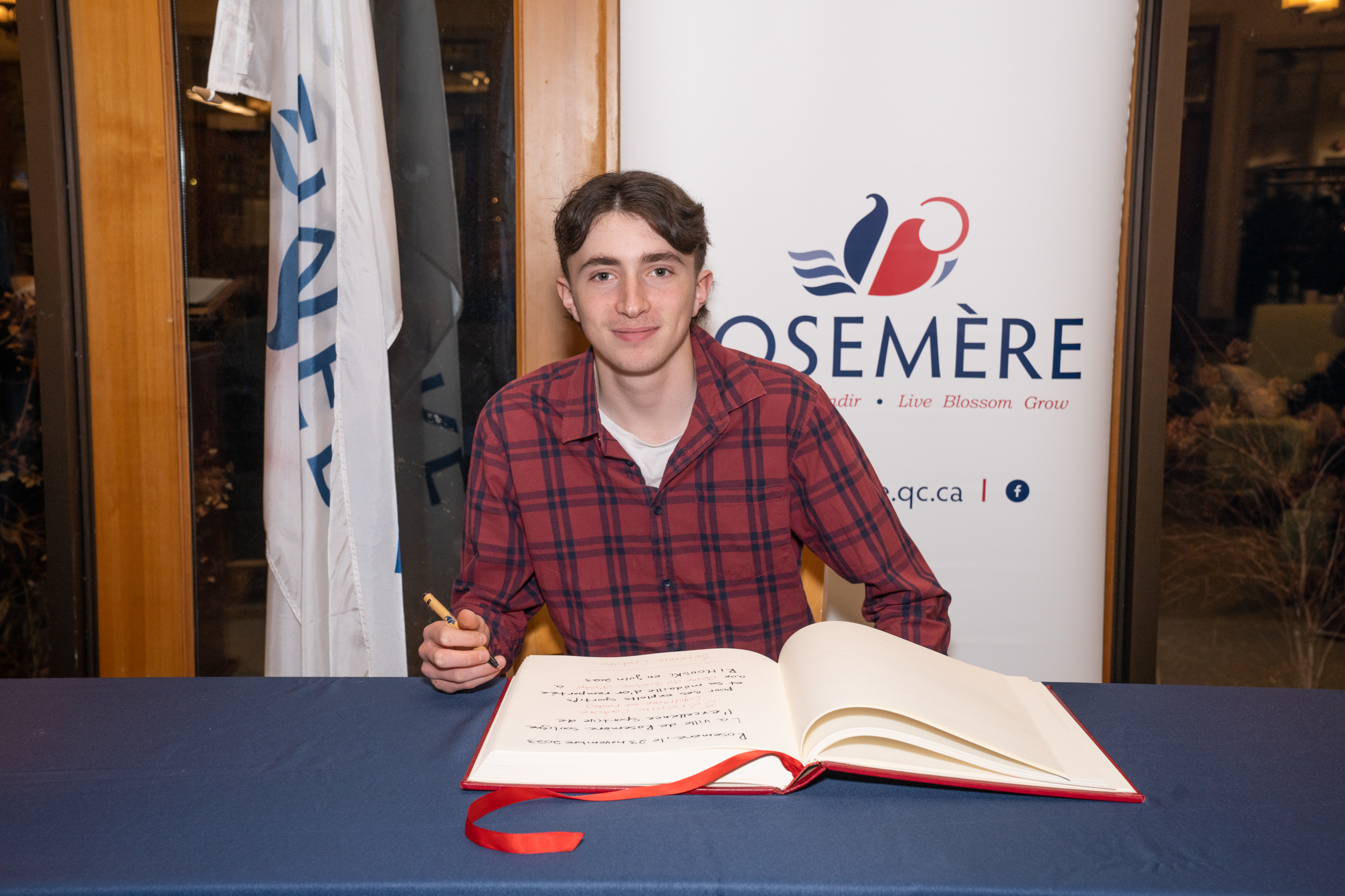 During a ceremony held in the atrium of H.J. Hemens Public Library on November 23, Rosemère mayor Eric Westram and councillors Stéphanie Nantel, Philip Panet-Raymond and René Villeneuve invited eight young Rosemerites to sign the Town’s Golden Book in recognition of their talent and perseverance. Family members and other supporters were also in attendance to pay tribute to these outstanding athletic and academic achievements.