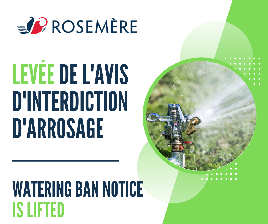 La Ville de Rosemère annonce la levée de l’avis d’interdiction d’arrosage pour l’ensemble de son territoire.