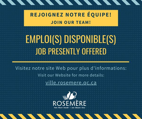 Pour en savoir davantage sur les emplois à la Ville de Rosemère : https://www.ville.rosemere.qc.ca/emplois