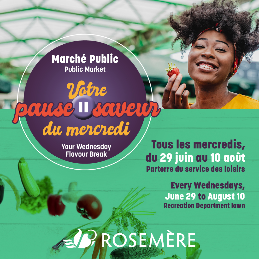 Le marché public sera présent tous les mercredis jusqu'au 10 août, au parterre du service des loisirs. C'est un rendez-vous!