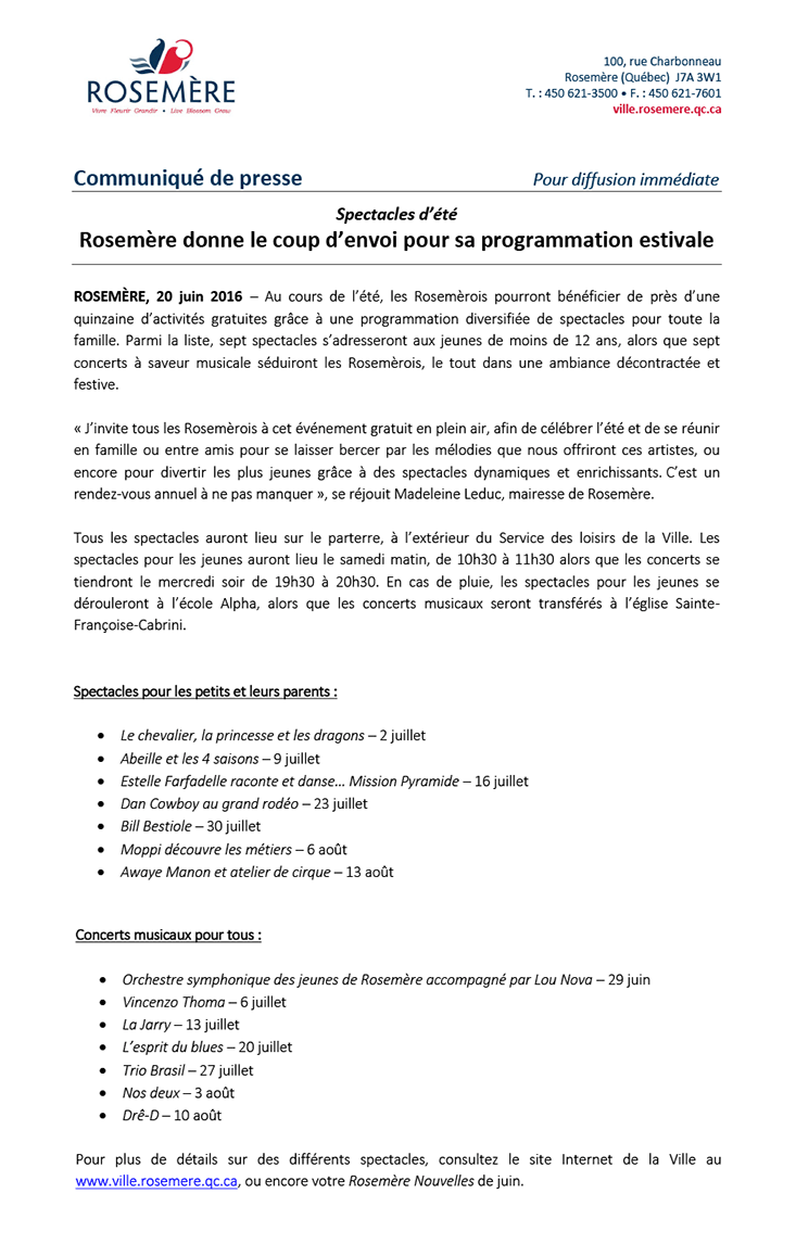 Rosemère donne le coup d’envoi pour sa programmation estivale