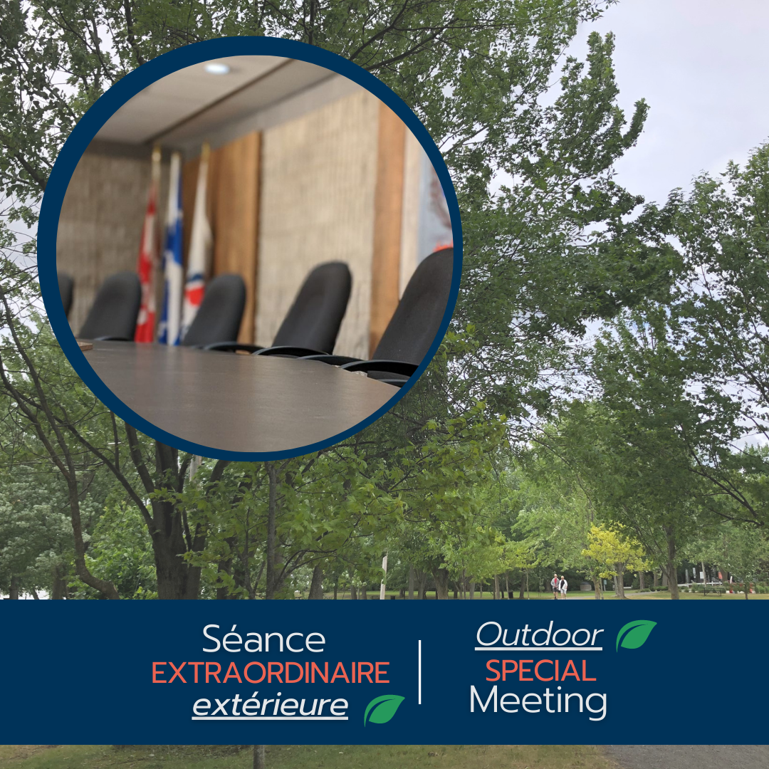 Une séance extraordinaire du conseil municipal aura lieu au parc Charbonneau le samedi 19 août, à 15 h 30, afin de procéder à l'adoption de la Politique municipalité amie des aînés et des familles (MADA - Familles).