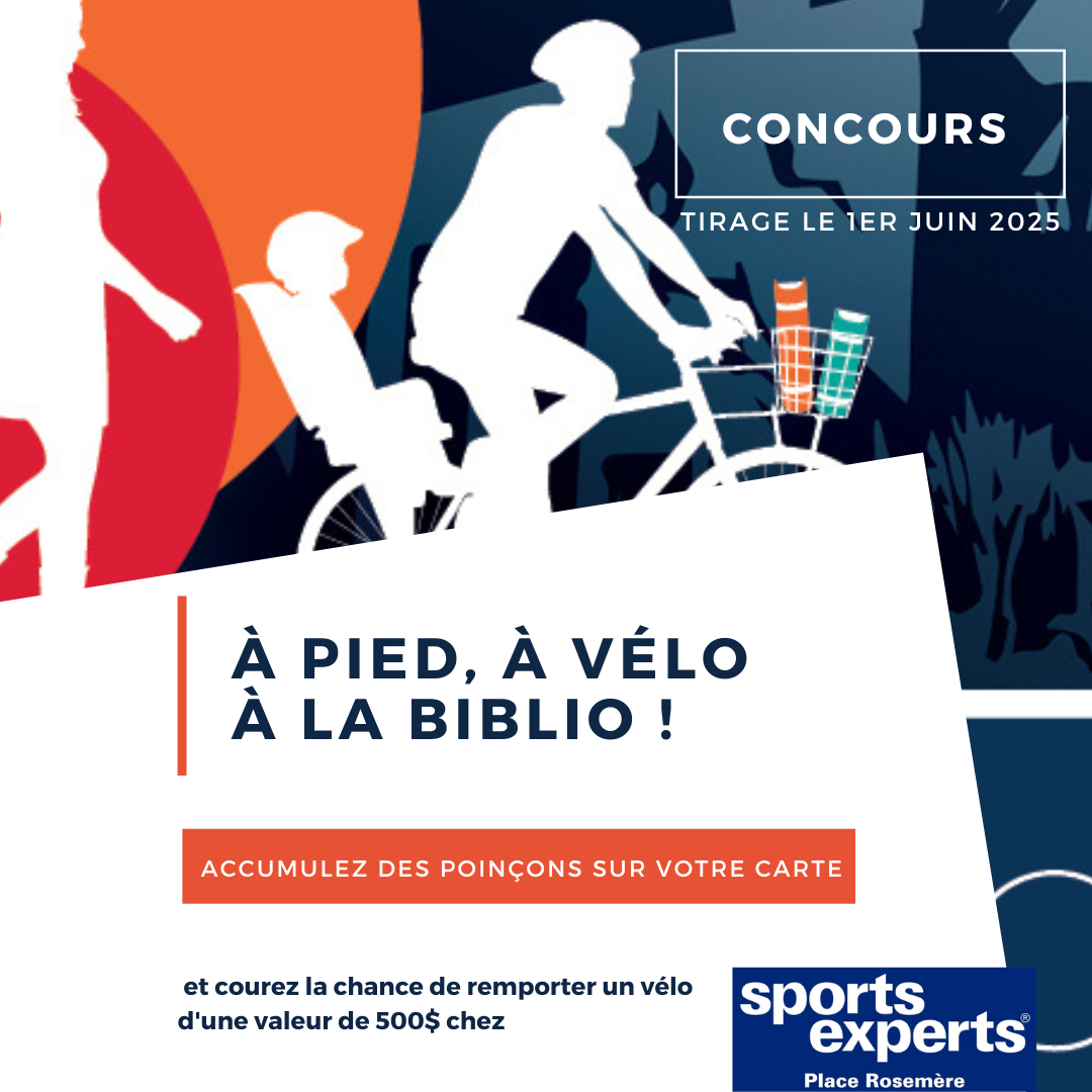 Cette initiative, à laquelle est relié un concours, permet de sensibiliser les usagers de la bibliothèque aux saines habitudes de vie. Pour pouvoir s’inscrire, il suffit d’être détenteur d’une carte de citoyen et de délaisser la voiture pour se rendre à la bibliothèque à pied ou à vélo. Les participants reçoivent une carte fidélité à faire poinçonner au comptoir de prêt à chaque visite lors de l’emprunt de documents. Chaque carte remplie (9 poinçons) donne une chance au tirage d’un vélo d'une valeur de 500$, gracieuseté de Sports Experts Rosemère.