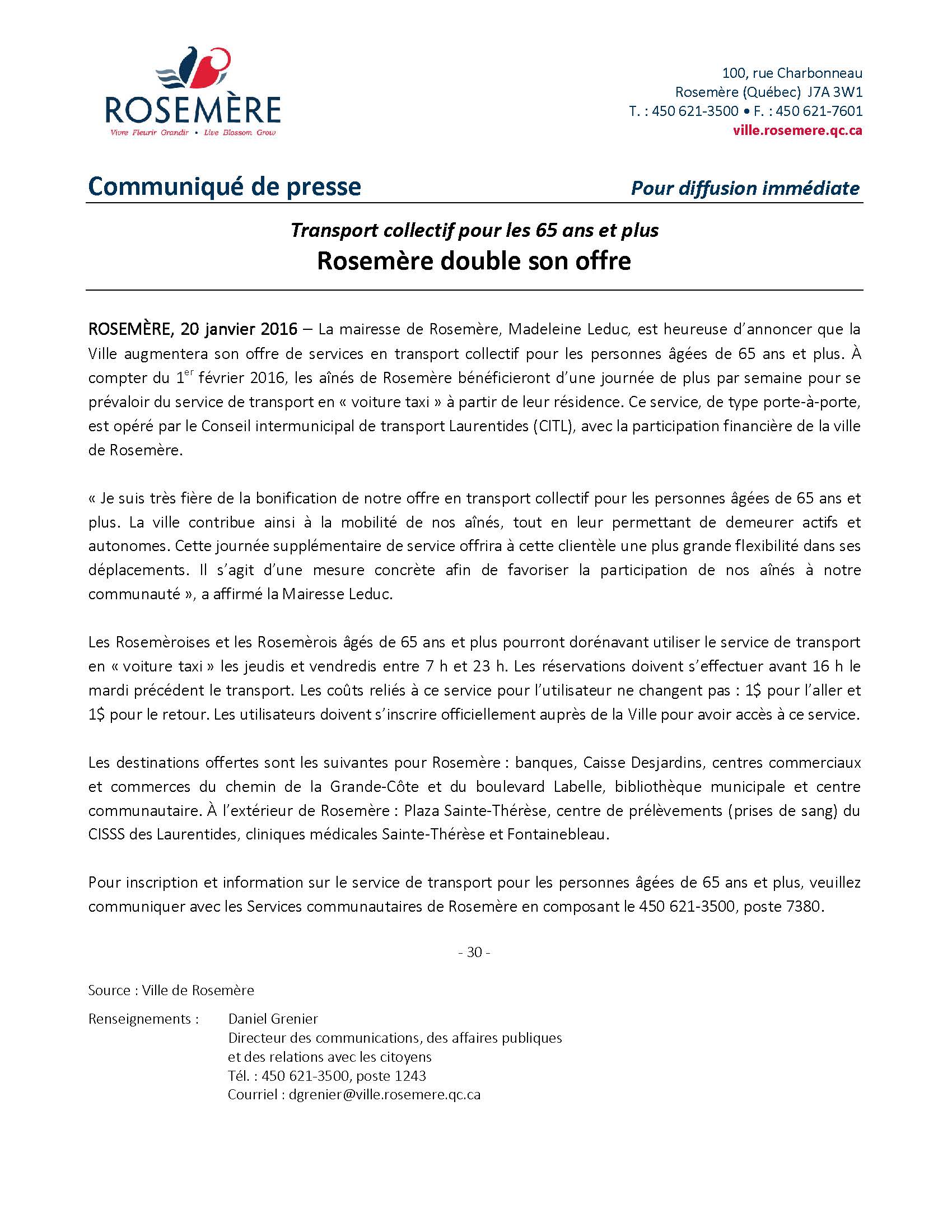 Transport collectif pour les 65 ans et plus - Rosemère double son offre